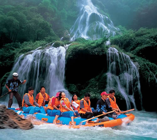 | 全天 | 張家界市區(qū)乘車沿途欣賞土家田園風(fēng)光(32公里)經(jīng)小溫線至中國(guó)旅游首漂—張家界茅巖河漂流起 漂碼頭,乘橡皮舟,漂流茅巖河,同當(dāng)纖夫樂(lè);與纖夫同唱《茅巖河號(hào)子》,體驗(yàn)纖夫快樂(lè)人生,賞索影峽、鴛鴦洲、鬼門關(guān)、水洞子瀑布、繞難灘、黃土城、西天取經(jīng)等景點(diǎn),觀峽谷秀麗風(fēng)光,品土苗漁家燒烤,打水仗,留倩影,親身領(lǐng)略“浪遏飛舟”的漂流險(xiǎn)趣,約2小時(shí)達(dá)終點(diǎn)碼頭,BUS返市區(qū)(25分鐘)。 |